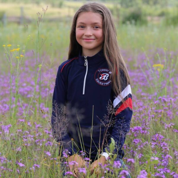 Striking, smart and elegant, introducing the Megan baselayer detailed with a gorgeous red and white stripe on the left arm and the Tommy B logo embroidered on the chest and back. Each Tommy B baselayer is handmade in South Africa from a soft, light and breathable 100% polyester spandex material ensuring riders are comfortable and smart all year round.